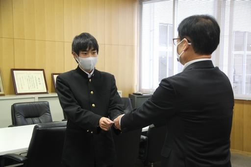 令和3年度北信越高校総体に出場する部活動に対して、激励費の授与が行われました。正村校長から「県の代表として、そして桜丘の代表として、持てる力を発揮してほしい。頑張って下さい。」との励ましの言葉と共に激励費が授与されました。