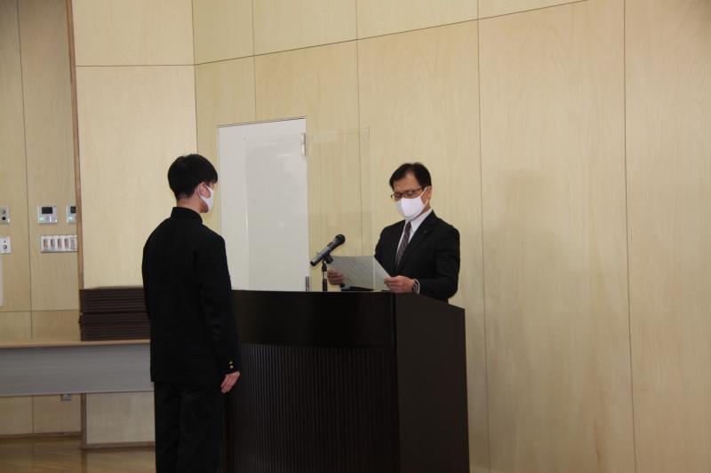 各ホーム担任の呼名の後、卒業生352名の代表として総代が前田校長より卒業証書を受け取りました。