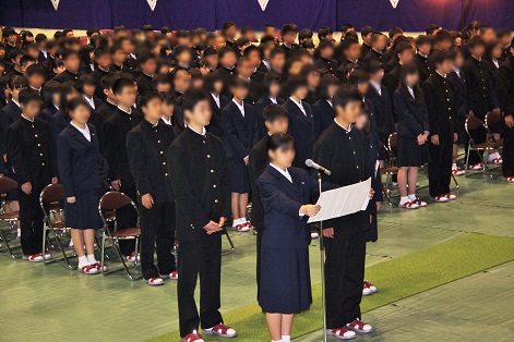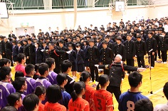の栄誉を讃えました。引き続き行われた、学年末の終業式では、学校長から、挨拶の大切さ
