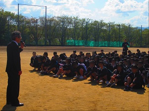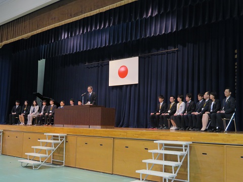 「今年度は3つの点を心がけてほしい。1つは挨拶を大切に、2つ目には努力する力をつけてほしい、3つ目には日々の活動は選択の連続であるので、何を選択するかしっかりと考えてほしい。」
