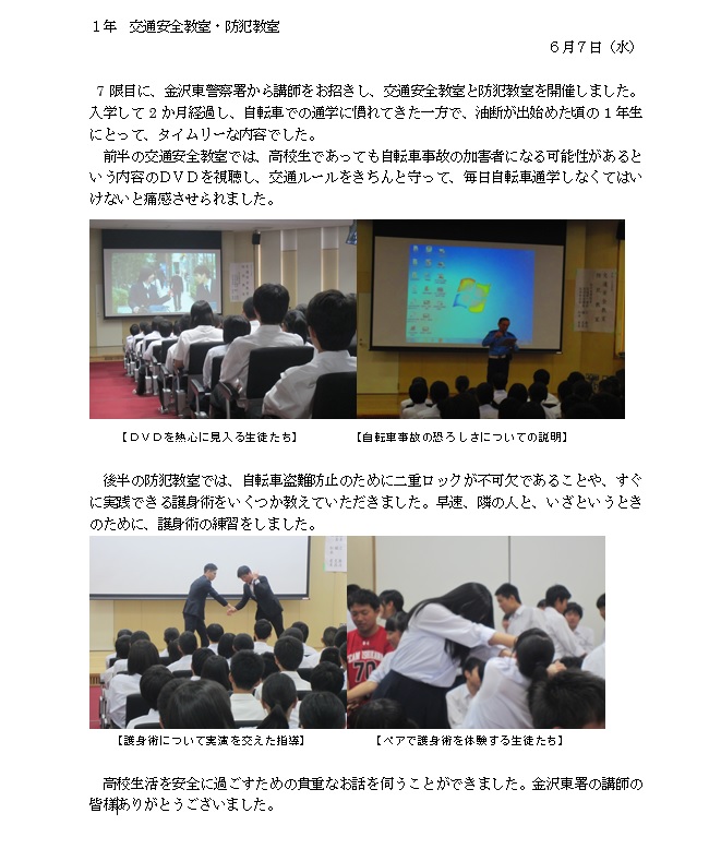 第1部においては、学年主任より第1学年の様子についての説明の後、進路指導課から「1年生にとって大切なことや保護者の方にお願いしたいこと」、教務課から「新2年生コース登録までの流れと、人文科学・自然科学コース各コースの特色について」、NSH推進課から「いしかわニュースーパーハイスクールの取り組みについて」の説明をしました。