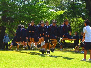 30℃を越える暑い日でしたが、試合を応援する1年生の声で体育館もグランドも、それ以上の熱気に包まれていました。応援の声の大きさでは校長先生から合格点を頂きました。