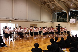 33℃を越える暑い日でしたが、本多の森ホールで打楽器のパフォーマンスを全学年で鑑賞しました。