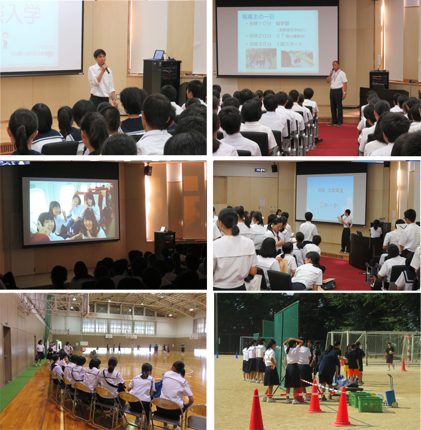 全体会では、学校概要の説明後、生徒会や放送部員によるビデオやクイズを交えた学校紹介を行いました。その後、施設や部活動の見学を実施しました。