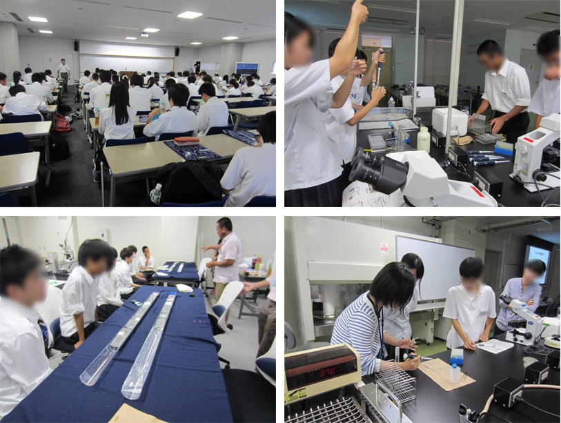 数学、物理、化学、生物、地学、情報の各グループに分かれ、双曲平面、原子間力顕微鏡、金属錯体、遺伝子、海洋プレート、流体力学など各分野の最先端の研究について体験しました。