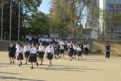 避難後、駅西消防署の福井様より、すべての生徒が迅速に避難できるように屋外では走って後ろの生徒たちが遅れないような配慮も必要だと講評をいただきました。