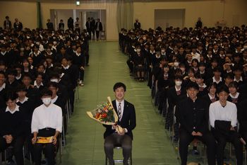 梅本学校長からの温かい激励の言葉の後、空手道部を代表して林主将が、全国選抜大会を目指して大会に臨むとの決意の言葉を述べました。