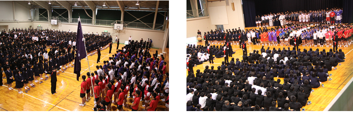 学校長および生徒会長による激励の言葉があり、最後に応援団リーダーを中心と