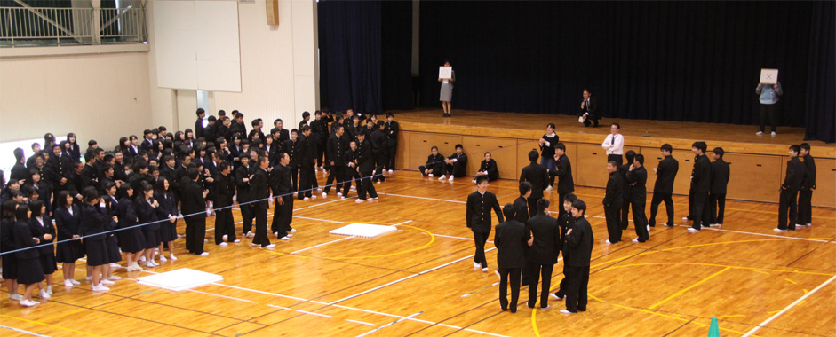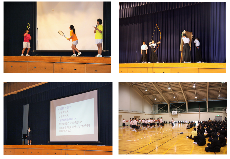 一年生を対象にして、部活動紹介を行いました。運動部・文化部の代表生徒から、自分たちの励んでいる部活動について趣向を凝らした特色ある紹介がありました。