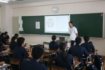 第1部では、越崎様にファシリテーター役を担っていただき、学生生活や職業選択について、講師の先生方にディスカッションしていただきました。第2部では、各教室で講師の方より、「仕事のやりがい」や「生きがい」また、職業選択の時期やきっかけなどについてお話を伺いました。短い時間でしたが、生徒たちが「現在の自分」と「将来の自分の姿」について考える有意義な時間となりました。「関心のあることに熱中すること」、「ご縁を大切に」、「今まで見たもの聞いたものが選択肢となるから、いろいろな経験をすること」、社会とは人間関係のもとで成り立つ」など、先輩の熱いメッセージが後輩一人ひとりの心に響いたことが、感想文からうかがえます。