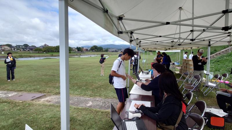 秋晴れの中行われている第36回3S歩行は、第一関門に生徒たちが続々と到着しています。