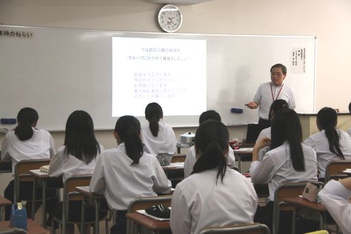 今回もジョブカフェ石川の森田浩先生をお迎えして、インターンシップのマナーや職場の方たちとのコミュニケーションのとり方を確認しました。また、自分の目標をシートにまとめたり、挨拶の実技練習も行われました。