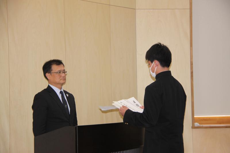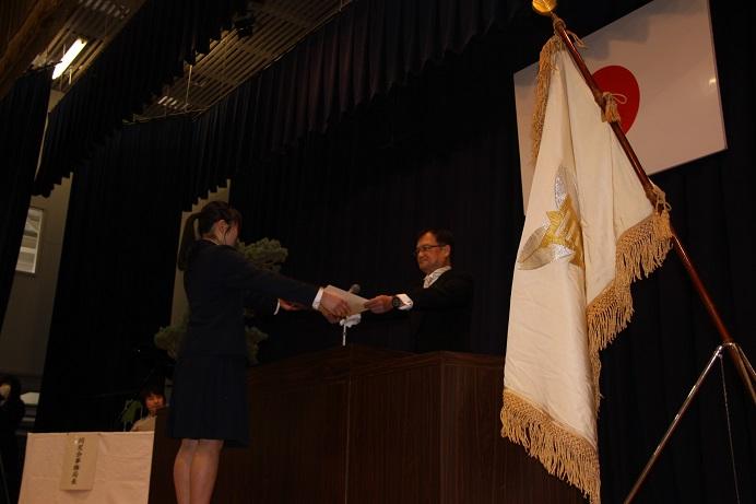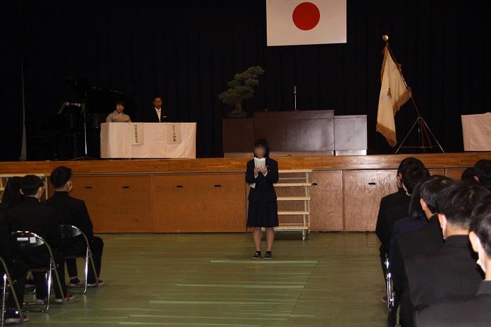 その後行われた生徒会役員認証式では、生徒会長をはじめとする後期生徒会役員17名が認証状を受け取り、生徒会長が代表して所信表明を行いました。