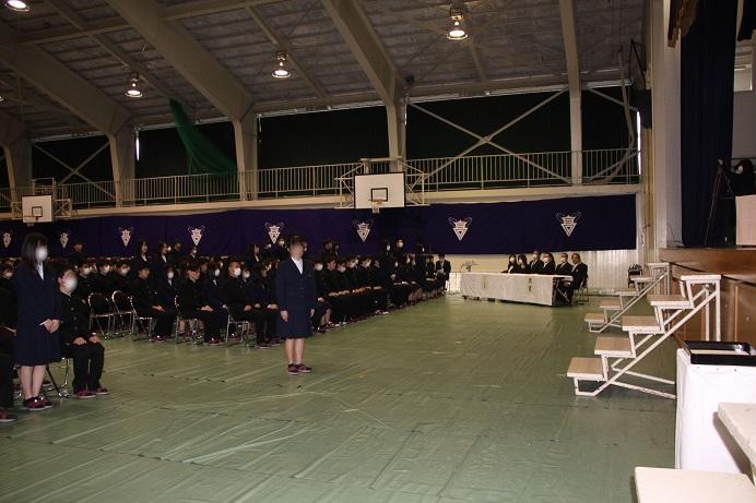 表彰伝達式では、各部の代表者が表彰披露をしながら、全員の生徒の活躍を報告しました。