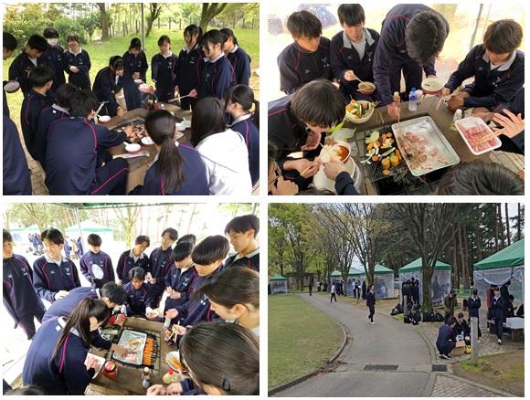 今年も3年生の遠足の目玉は、バーベキューです!全てのグループ共通の肉や焼きそばに加え、グループごとに作りたいメニューを考え必要な食材を購入、準備して当日を迎えました。卯辰山健民公園まで徒歩で向かい(食材や調味料はバスで現地へ)到着して、クラス写真を撮影した後、各班で火起こし作業が始まりました。当日は始めに強い風が吹いており、火起こしに苦戦する班もありましたが、仲間同士で知恵を出し合い、すぐに解決、各グループで思い思いのバーベキューを楽しみました。