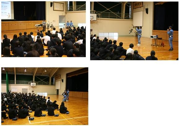 実際の事例を交えながら、ヘルメットの正しい着用方法や、交通ルール・マナーの確認も行われ、生徒たちは真剣な表情で耳を傾けていました。