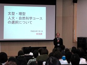 7月1日(土)、本校視聴覚室において1年生保護者進路説明会を開催し、248名の保護者の方にご出席いただきました。