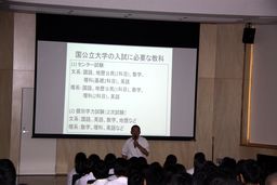 船橋先生は、社会による各大学の評価が保護者の方々の受験時代とは大きく変化していることを具体例を挙げて説明され、慎重に大学を選択して欲しいと話されました。