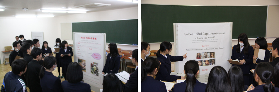2年人文科学コースでは、6月から課題研究を続けてきました。本日はその研究成果を