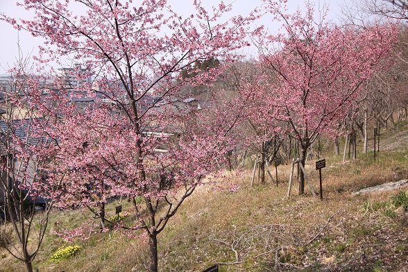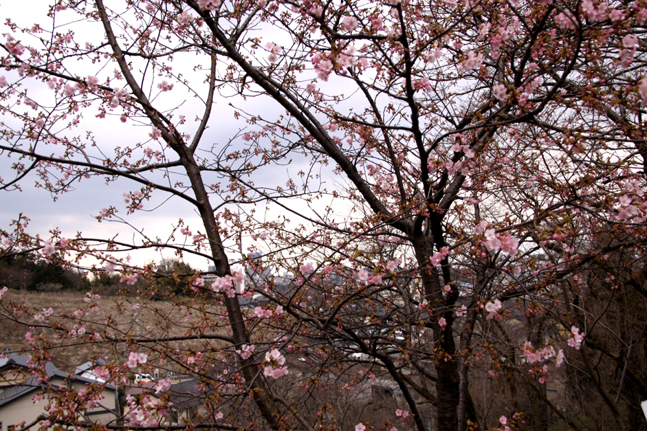 カワヅザクラ、タンポポ、フキ、ヒメオドリコソウ、スイセン