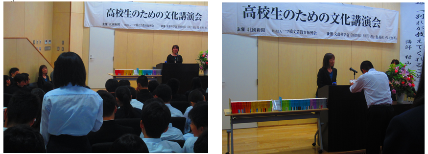 集英社の文庫本100冊と、村山さんのサイン入り色紙や本も贈呈していただきました。これから桜高生みんなで大切に読んでいきたいと思います。素晴らしいご講演をしてくださった村山由佳さんに心からの感謝の言葉をお伝えしたいです。ありがとうございました。
