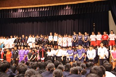 定期試験終了後、本校第一体育館で県高校総体・総文に向けた壮行式が行われました。ユニフォームを身につけた各部選手が入場し、全校生徒を前に各部の部長が意気込みを述べました。