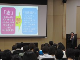 開催挨拶において、学校長より「他の人のために働けること(社会貢献)を喜びとし、AI(人工知能)の発達等による社会の変化に対応できる人材になってほしい」という願いをお伝えしました。