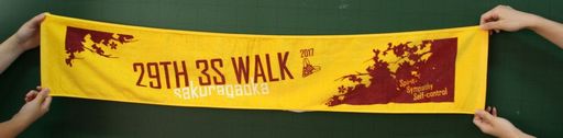 3S歩行の集会では、3S歩行未体験の1年生のために昨年の様子を記録したDVDが上映され、1年生だけでなく2・3年生も昨年を思い出しながら、食い入るように見つめていました。当日使用する3S歩行記念タオルのデザイングランプリ表彰が行われた後、