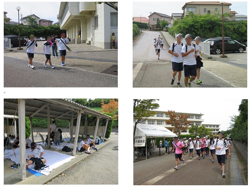熊野PTA会長・下根校長先生のあいさつ・激励の言葉の後、生徒会会長の号令により、一斉に、元気よくスタートしました。(8:00)