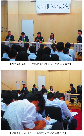 社会人としてご活躍中の本校卒業生をお招きして、「社会人と語る会」を開催しました。