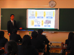 普段から名前は耳にしているけれども詳しくは知らなかった企業について、業務内容から日常の様子までを映像を使ってわかりやすく丁寧にお話いただき、生徒たちはいつも以上に目を輝かせて聞き入っていました。