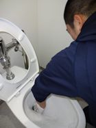悴む手にスポンジをもち、トイレの水を抜いて奥の方や隅々まで、1つのトイレにつき40分間かけて磨き続けました。