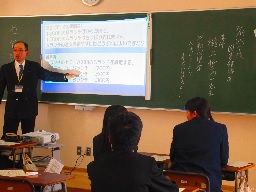 本校では、毎年2月に「図書館講座」として、先生方に講師を依頼して、読書体験やお薦めの書籍について、各教室で話してもらっています。生徒の知的好奇心を高め、読書意欲の向上を図る一助となっています。