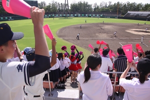 野球部とブラスバンド部を中心として、午前の補習を終えた生徒、同窓生、PTAの方々と一丸となって応援をしました。