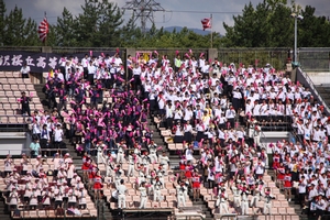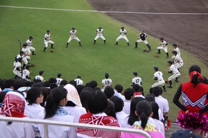 野球部とブラスバンド部を中心として、午前の補習を終えた生徒、同窓生、PTAの方々と一丸となって応援をしました。