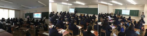 キャリア教育の一環として、県内の有名企業や事業所の方々から仕事内容や社会貢献について語っていただきました。6限目と7限目を使って一人が2社の説明を聴くことができました。企業の方の中には本校の卒業生もいらっしゃいました。