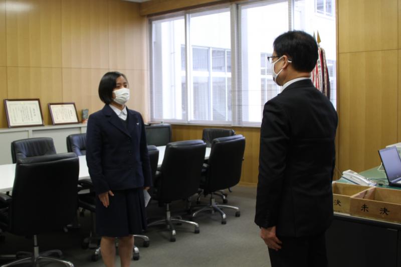 前田校長から激励費の交付とともに、期待の言葉と温かい励ましを頂きました。また、女子主将から「夢・きぼう」枠での出場ということで、「貴重な経験ができる機会を得ることができ、大変感謝しています。チーム一丸となってよい結果が得られるように頑張ってきます。」との決意が語られました。