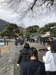 厳島神社の大鳥居は工事中ではあったものの、教科書やテレビでしか見たことのなかった光景を目に焼き付けていました。