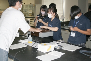 数学,物理,情報・計算科学,化学,生物,地学の各体験セミナーに分かれ、高校のレベルを超えた講義を受け、先生や学生・院生の指導のもと実験を体験しました。