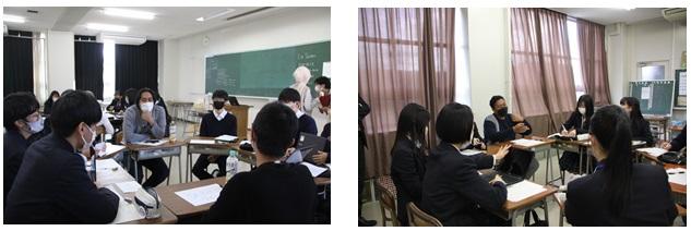 午後の時間に外国人との交流研修が行われました。金沢大学の留学生12名の方をお招きして、自己紹介や課題研究の内容を紹介しました。こうした交流活動を通して、外国語運用能力の向上を図りながら、異文化の理解を深めていきたいと思います。