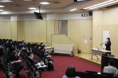 同窓会入会式では、青木同窓会会長よりご挨拶があり、倉本同窓会事務局長から説明がありました。その後、同窓会クラス幹事の紹介がありました。金沢桜丘高校の卒業生として、様々な分野での活躍を期待しています。