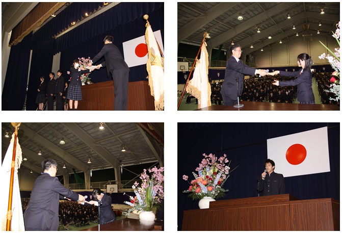 また、新入生代表宣誓があり、各クラスの代表者9名が先生の言葉を述べました。