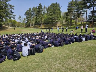 4月19日(金)、遠足を実施しました。奥卯辰山健民公園に1時間ほどかけて歩いて向かいました。公園到着後は、各クラスのホーム委員長・副委員長の運営のもと、クラス対抗のレクリエーション大会を行いました。○×クイズ、大縄跳び、ボール運びリレーの3種目をみんなで楽しみました。昼食やその後もクラス内の親睦を深めている様子が多くみられました。学年目標は「他を思いやり、メリハリのある学校生活を」です。また来週から元気に登校して、授業を大切に、学校生活を送ってほしいと思います。