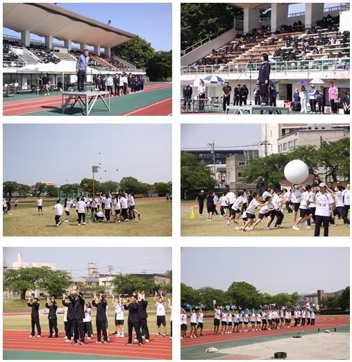 雲一つない快晴の中、金沢市営陸上競技場において、第1回桜スポーツフェスタが行われました。この行事は昨年までは校内陸上競技大会として開催されていた行事でしたが、今年度は生徒会が中心となり、午前中は記録会、午後は赤・白・青団に分かれて競技を行い、優勝を競う形で行われました。