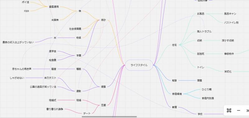 先週に引き続き、気になるキーワードについて、マインドマップで思考を拡散させました。人文科学コースでは、ホワイトボードのように使用できる「Miro」というアプリケーションソフトを用いました。ここからどのような課題を発見することができるのか楽しみです。
