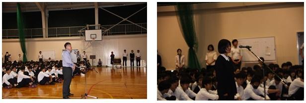 【石尾校長の激励のことば】 【生徒会長からの激励のことば】 【選手代表あいさつ】 【退場】