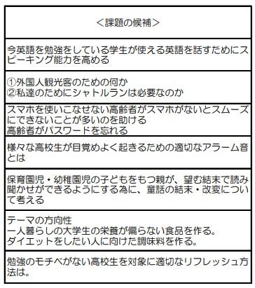 人文科学コースでは、先週作成したマインドマップ上のキーワードから、「これは課題になりうるのでは?」と思われるキーワードをピックアップし、どのような課題がありうるかを考えました。