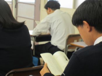本校伝統の学校行事である集団読書を実施しました。ホームごとに同一テキストを読み、グループでテキストの推し部分や感想について、1分間プレゼンテーションとしてグループ内で発表します。他の人の異なった意見を聞き、自分の読みを深めるのに役立つ有意義な活動です。