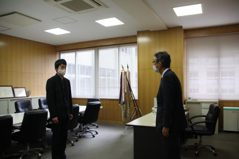 本日校長室において、卓球部に対して激励費授与式が行われました。今回卓球部は北信越高等学校選抜大会に個人の部に出場します。正村校長先生から出場選手に対し、激励費とともに励ましの言葉をいただきました。また出場する選手は「一つでも多く勝ち、一生懸命がんばってきたい」との決意の言葉を述べました。