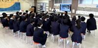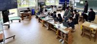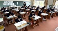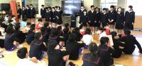冬季期間の体力向上に向けてなわとび運動を活用しています。今年度は次年度や今後の羽咋小学校との交流を踏まえて、新しいなわとびチャレンジで取り組みます。そこで健康委員会から説明や模範跳び、そして羽咋小からの模範VTRを視聴して取組を理解しました。これまでとは異なることがありますが、個々に目標を掲げて取り組んでほしいと思います。